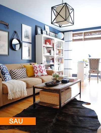 Đồ đạc được thay mới mang tông màu trung tính khiến nhà thoáng đãng hơn. Chủ nhà tạo điểm nhấn cho phòng bằng một mảng tường màu xanh đậm và làm thêm một hốc tủ để sách, đồ trang trí.